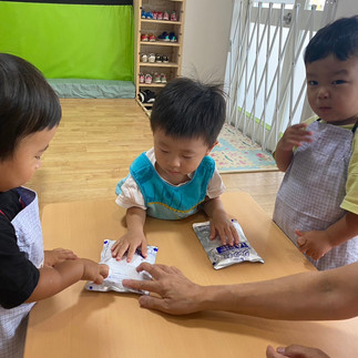 モミモミしてから先生と一緒にボウルに入れます🎵